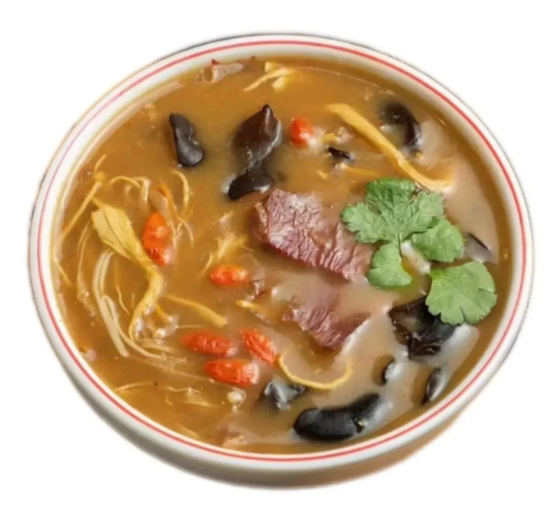 看品相:汤应稠而不懈,即粘稠但用勺子舀起时能顺畅流下。配料丰富,肉块/丁实在。
