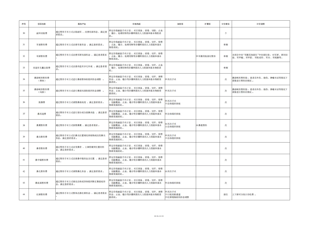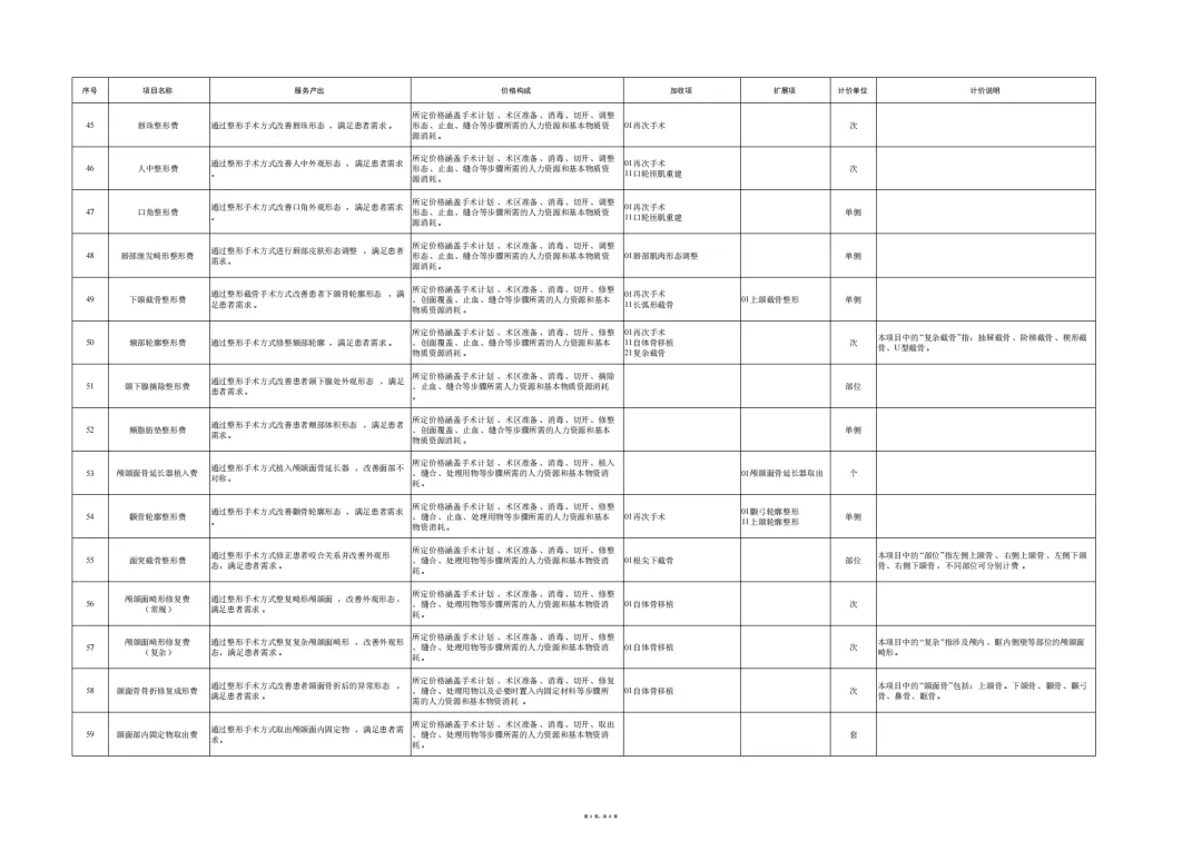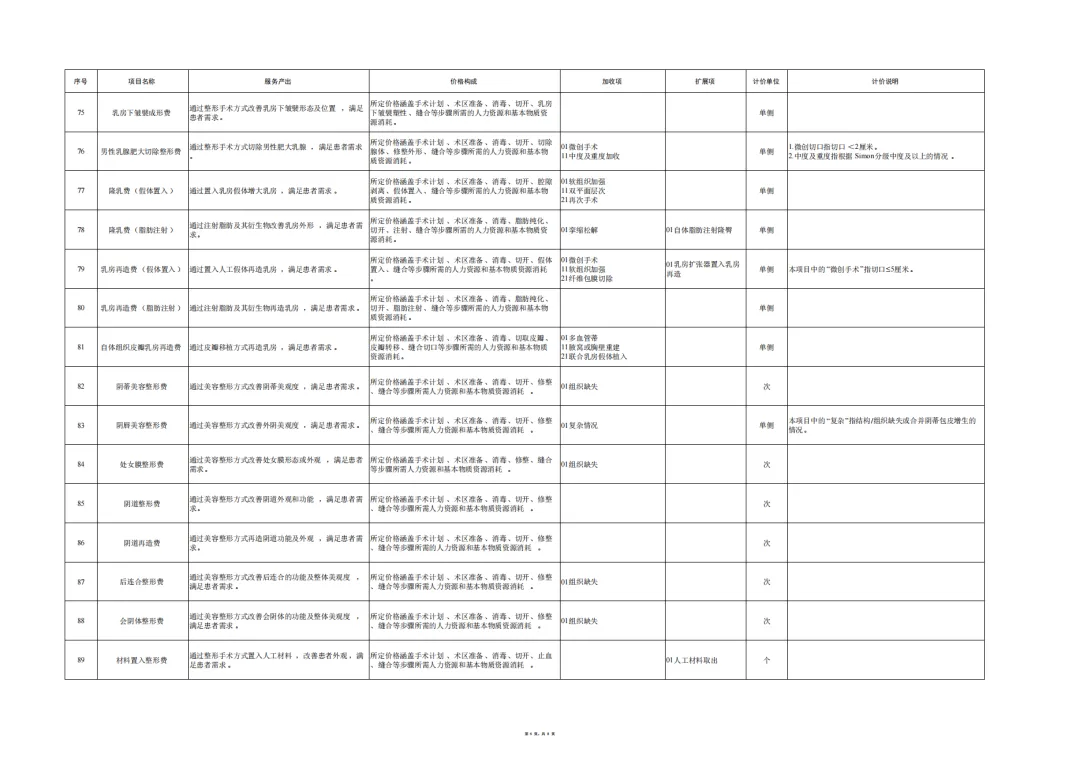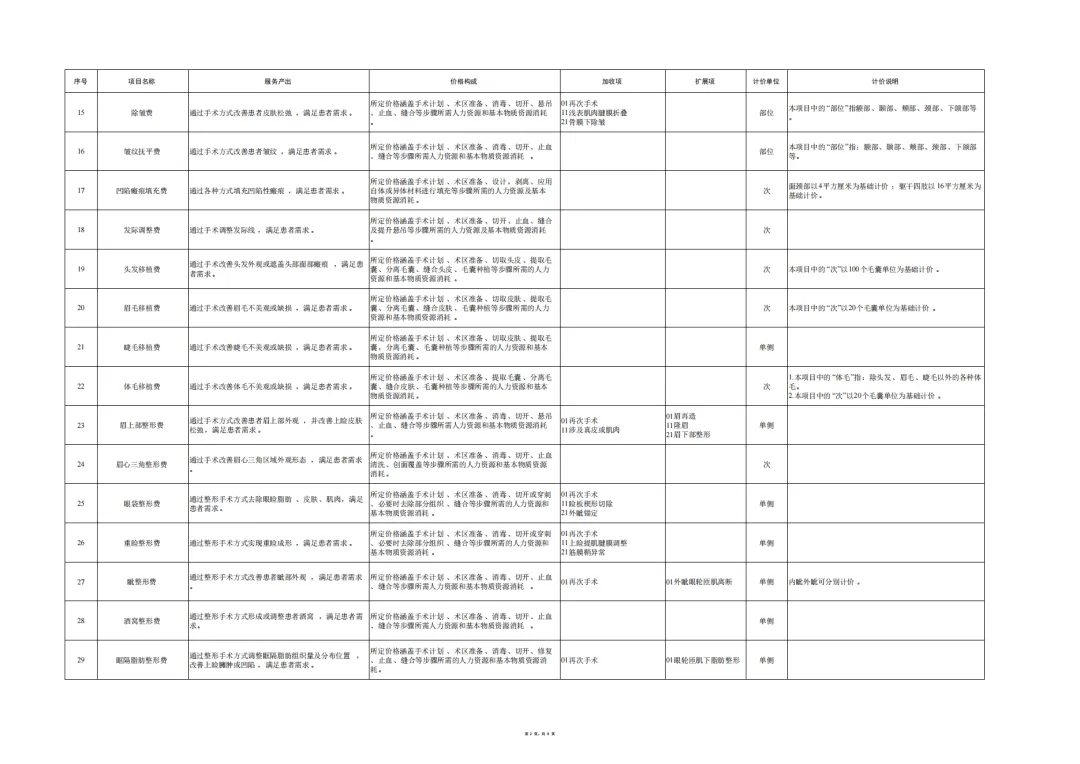 编制说明:为贯彻落实《深化医疗服务价格改革试点方案》,推进全国医疗服务价格项目规范编制工作,按照“成熟一批、发布一批”的工作思路,近日国家医保局编制印发了《美容整形类医疗服务价格项目立项指南(试行)》,设立101项美容整形项目。下一步,国家医保局将指导各省医保局参考《美容整形类医疗服务价格项目立项指南(试行)》,指导有条件的医疗机构按照公平合理、诚实信用、质价均等的原则自主合理制定价格,并及时向社会公开公示。