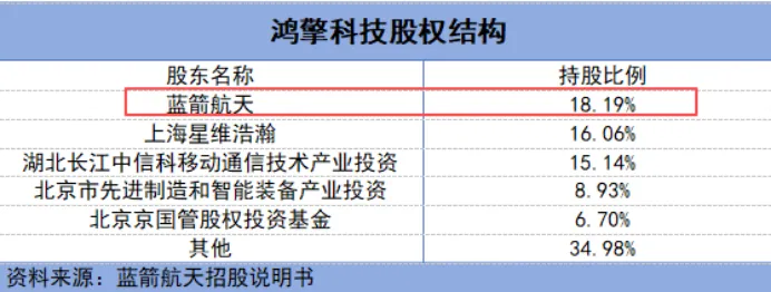 值得注意的是,蓝箭航天持有鸿擎科技约18.19%的股权,持股比例最大,这意味着一旦蓝箭航天成功上市,烽火通信有望打入蓝箭航天供应链。