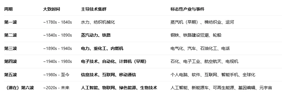 康德拉季耶夫周期(康波周期)作为跨度50-60年的超长经济周期,是决定大宗商品长期价格趋势的核心框架,其本质是由技术革命、产业更迭驱动的全球经济增长周期。