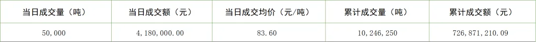 今日挂牌协议交易成交量2,439吨,成交额199,498.00元;今日无大宗协议交易;今日无单向竞价。
