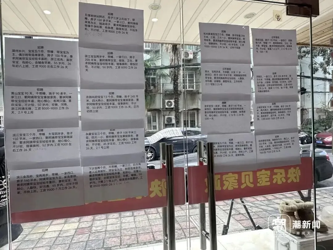 杭州朝晖二区,线下家政店扎堆,这里以住家阿姨和育儿嫂等为主。王韵鸥 摄