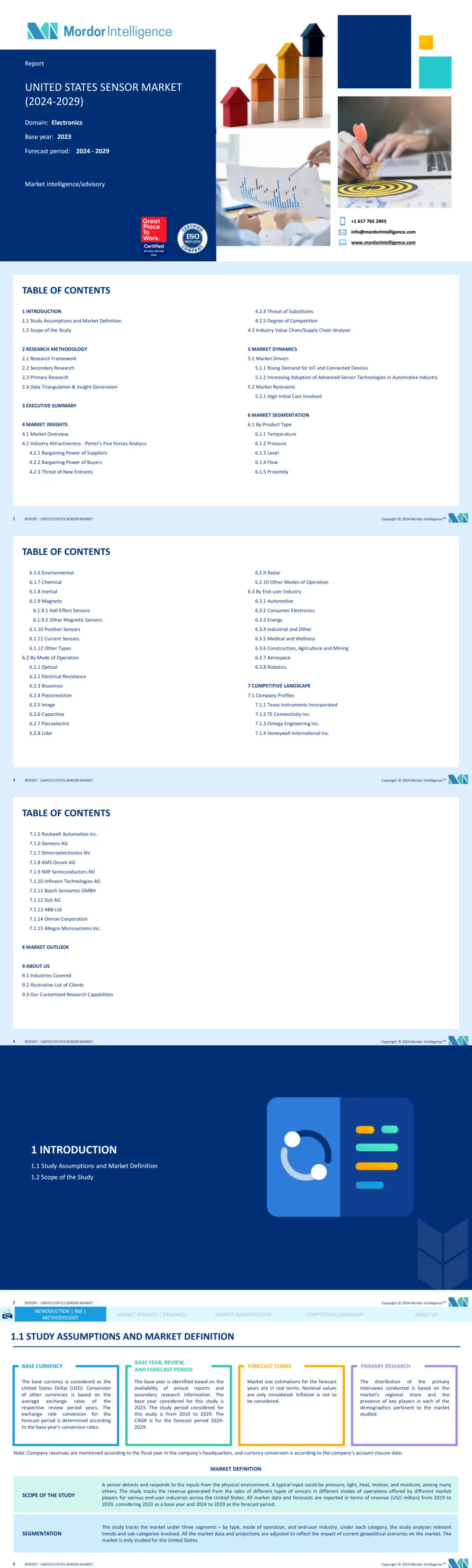- 研究范围聚焦美国传感器市场,研究周期为 2019-2029 年,基期设定为 2023 年,以美元为结算货币,市场规模按收入统计(单位:百万美元)。