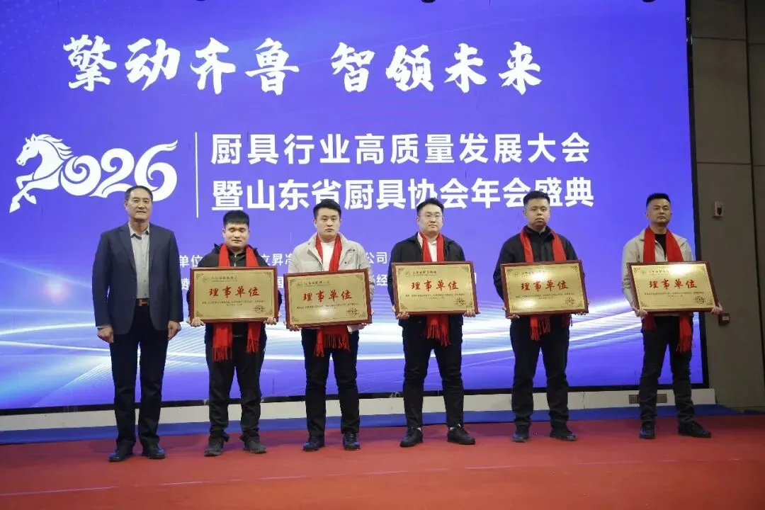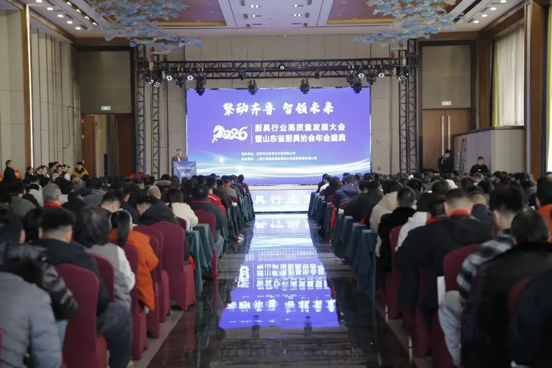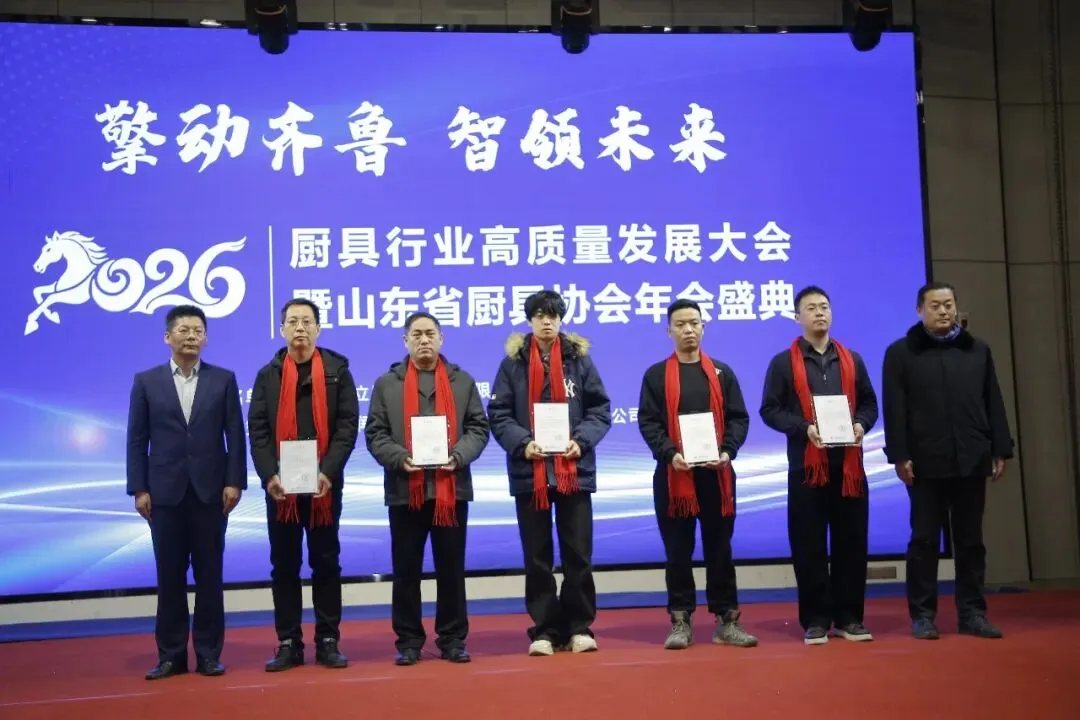 1月26日,“擎动齐鲁 智领未来”2026山东省厨具行业高质量发展大会暨年会盛典在中国厨都-兴福镇隆重召开,印度尼西亚中国餐饮协会执行会长夏雪峰,全球客家崇正会联合会副总执行长陈怀志,北京冬奥会机器人餐厅研发总负责人崔启佳,中国质量认证中心有限公司青岛分公司总经理张少君,中国质量认证中心有限公司产品认证二部经理助理徐益,滨州市投资促进中心党组书记、主任王辉,滨州市民营经济发展服务中心党组副书记、副主任王义中,滨州市场监督管理局党组成员、副局长高连强,滨州市工商联四级调研员秦立刚,滨州市贸促会党组成员、副会长李亮,滨州职业学院产教融合处处长耿宏银,鲁北技师学院合作发展处处长刘经华,滨州市技师学院产教融合发展处副处长顾金刚,博兴县人大常委会党组书记、主任刘方太,博兴县人大常委会副主任、县工商联主席安长东,博兴县委统战部副部长、县工商联党组书记董敏,博兴县总工会党组书记、副主席张文涛,博兴县贸促会党组书记、会长周坤,博兴县工信局党组书记、局长刘常忠,博兴县民政局党组书记、局长任瑞新,博兴县商务局组书记、局长张国栋,博兴县市场监督管理局组书记、局长李辉,博兴县投资促进服务中心党组书记、主任李晓刚,博兴县委社会工作部副部长、县委“两新”工委副书记贾蓬勃,临淄区市场监督管理局党组成员、副局长孙忠祥,兴福镇党委书记王兆建,曹王镇党委书记代军,店子镇党委副书记、镇长纪文勇,山东省厨具协会终身名誉会长范曰光、会长王炳森、监事长朱永刚以及山东省厨具协会副会长、理事及全体会员,各专业委员会主任、副主任,博兴县厨具协会会员代表,朱台镇部分厨具企业代表,部分银行系统负责人,以及社工部、工商联、市场监管局、民政局、工信局、商务局等单位相关科室负责人近500人参加会议。