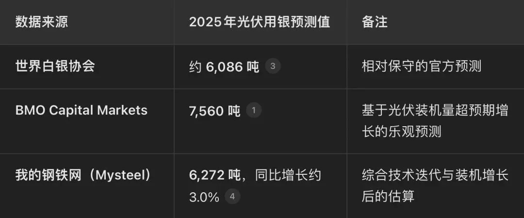 2025年全球光伏行业的白银消耗量预计在6,000吨