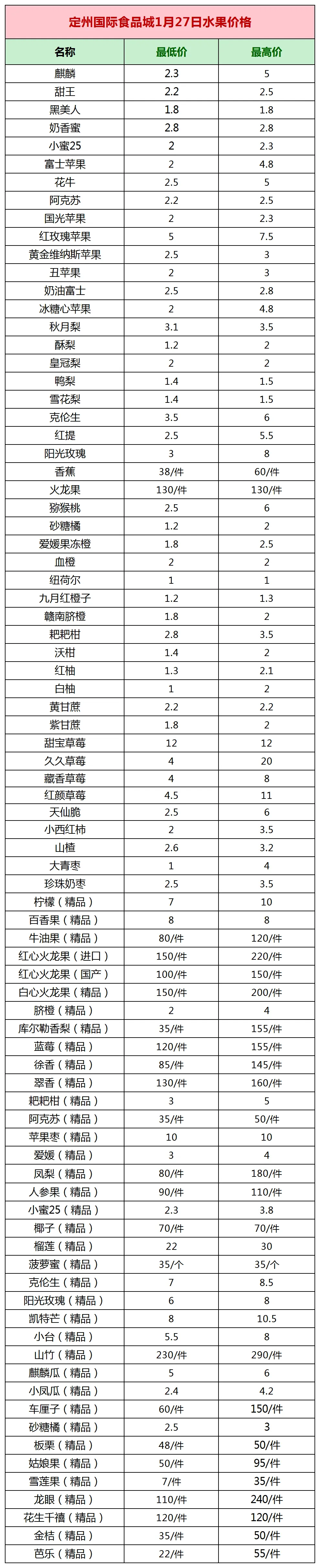 【民以食为天,365天,天天无淡季。为方便广大商户进货采买,获取最新蔬果信息,此微信号每日为您提供定州国际食品城蔬果行情。以下果蔬价格数据计量单位均为元/斤!果蔬价格行情波动比较频繁,请以实际购买单价为准!】