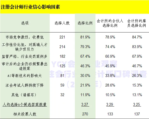 摘自尚在撰写中的《YCY会计行业观察2025年注册会计师行业和会计所口碑调查报告》。投票人可访问指定网址阅读撰写中的报告。