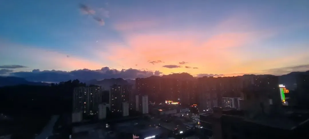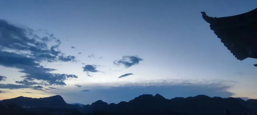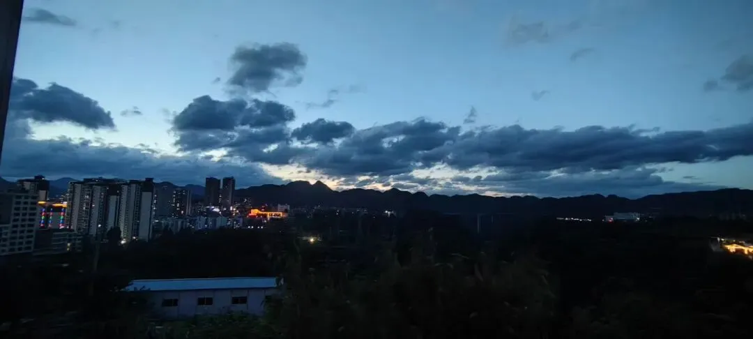 25年7月24日,还是傍晚纳凉,一个人的浪漫属于是:夜色润蓝调,飞云绕青山;