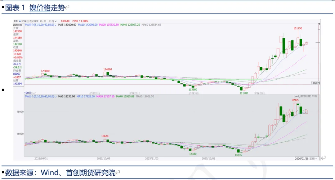 1. 印尼镍政策调整:印尼对镍供应目标下调至2.5亿至2.6亿吨左右,显示对供应端的强力管控,形成了“配额削减+制度优化+成本抬升”的组合拳;印尼宣布自2026年起恢复RKAB的年度审批制度,旨在增强政府对资源流出节奏的年度控制力2. 印尼镍产业战略升级:从早年“扩大产能、吸引投资”转向“稳定价格、提升资源附加值”,旨在解决全球镍市供应过剩、镍价持续下跌的问题,进而推进“采矿 - 冶炼 - 电池 - 整车”完整产业链构建。3. 镍再平衡呈现显著结构性分化:配额分配向一体化、高优先级项目倾斜(MHP > 冰镍 > 镍铁),叠加成本优势差异,预计镍铁供应大幅收缩,镍盐与纯镍供应维持小幅增长,全球镍产业链资源流向将重构。4. 镍价走势向上:对于2026年镍价走势,需要打开想象力空间,印尼镍矿政策是关键,镍供应下调将完全改变镍的价格走势,不过目前因为政策尚未完全落地,未必没有微调的可能,镍的短缺幅度仍待考虑,不过对于供应下降的确定性,我们选择上调了镍的价格区间:沪镍价参考区间【12-17】万元/吨,LME镍参考区间【1.5-2】万美元/吨。而随着政策对镍的扰动,目前镍价波动率已经出现大幅上升,若后续政策落地,波动率将会逐渐下降,那么通过期权交易波动率下降也会是个不错的选择。风险因素:全球宏观政策扰动,印尼镍矿政策反复、精炼镍供应过剩、镍需求疲软首创期货研究院