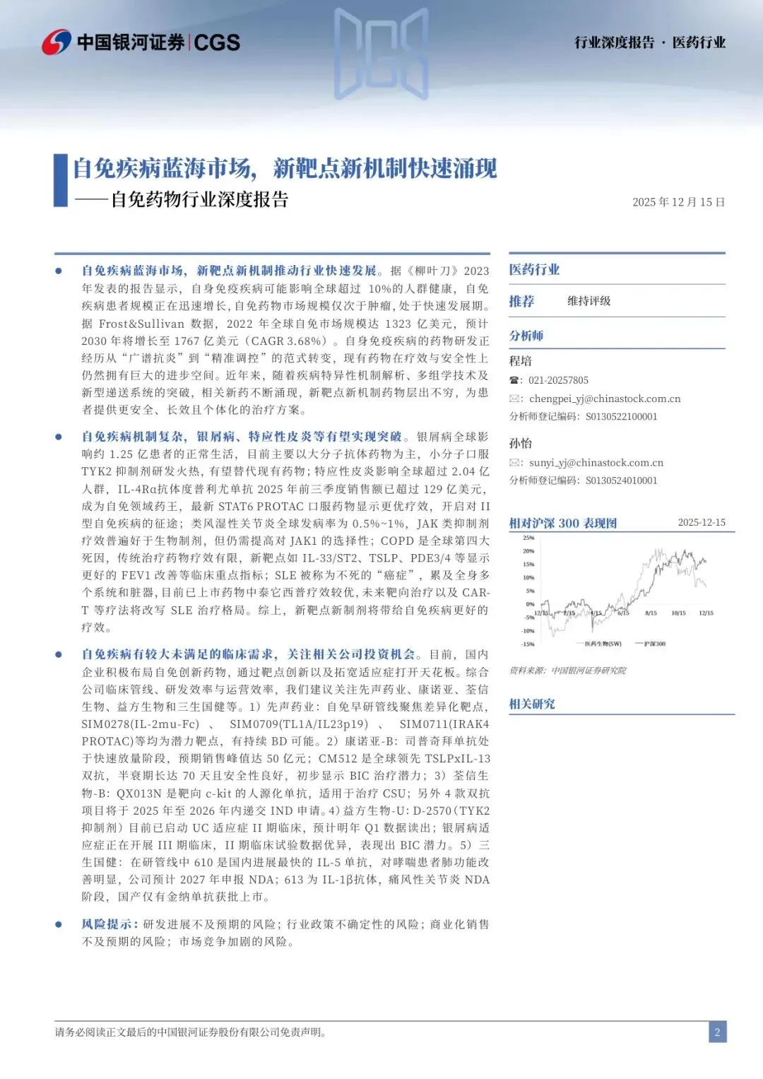(一)先声药业:获得大MNC 认可,自免双抗有望出海