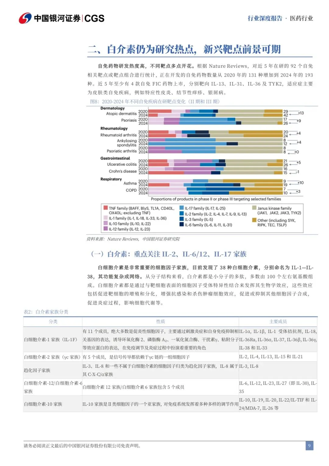 (一)白介素:重点关注IL-2、IL-6/12、IL-17 家族