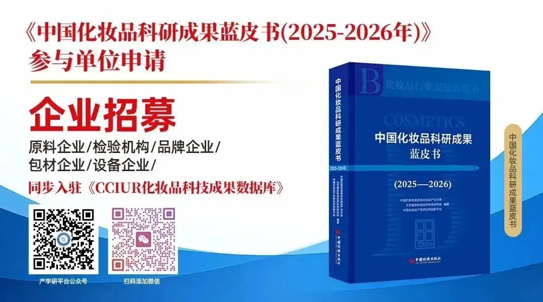 为系统呈现中国化妆品领域近两年的科研突破与创新趋势,《中国化妆品科研成果蓝皮书(2025-2026)》现面向全国征集编委专家及支持单位。入选机构及专家将载入行业权威文献,共享传播资源,共建产学研生态。