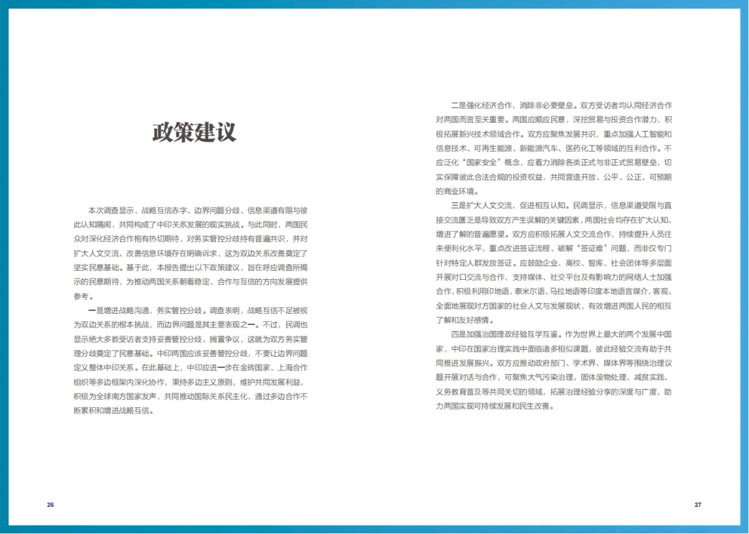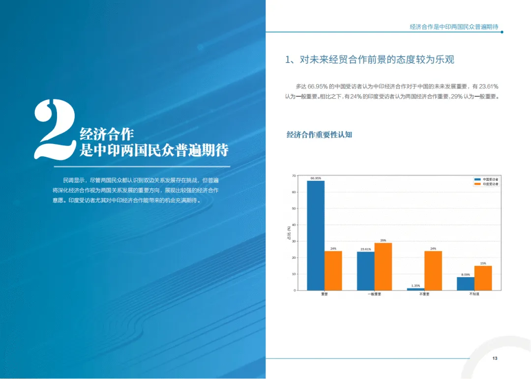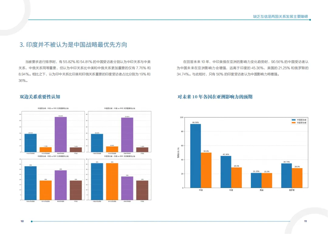 2025年10-12月,中国外文局中东欧与中南亚传播中心等机构联合开展“中印关系发展与媒体责任民间调查”,基于1091份印度有效样本和763份中国有效样本(中国样本以18-24岁青年为主),从多维度分析中印关系现状与趋势。完整版报告已上传至星球,扫下方优惠券加入即可下载所有报告