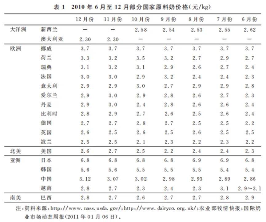 从表1可以看出,目前我国每千克生鲜乳收购价格远远高于美国和欧洲的大部分国家,主要原因是生产成本居高不下,那种入世前普遍认为我国存在的价格优势已经荡然无存,这是我国奶业面临的真正危机,不解决好这个问题,奶业发展就没有前途。