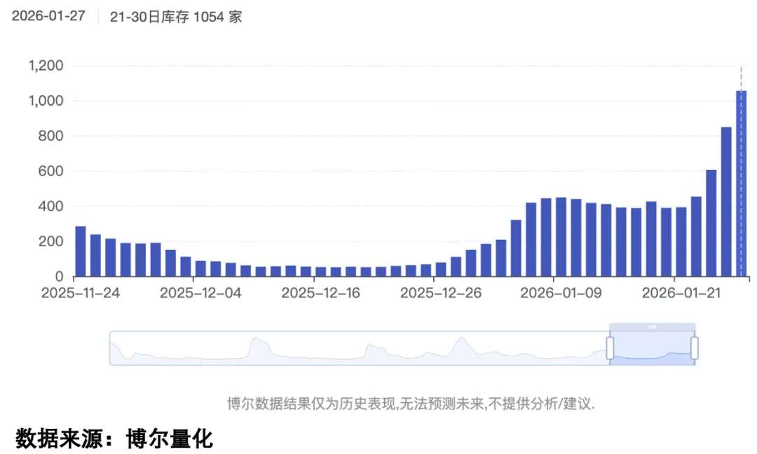短期的博弈一定会很大,否则今天一早都没看到所谓的「国家队」出手,可市场的情绪却崩了,这就是短期资金对市场的干扰,我们一定努力格局,就像今天虽然个股调整较多,但是好的迹象是,「21-30日库存」继续创出阶段新高,而且今天这个数值增加较多,那么可能想而知,今天出逃的资金当中,一定有卖错的。