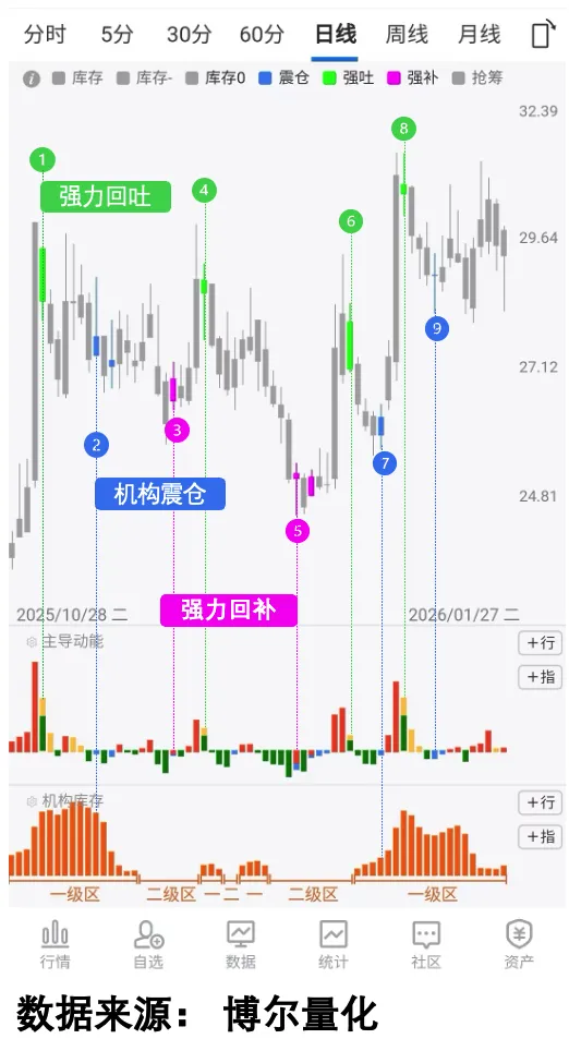 最后说回这只股票——它根本不适合「捂着不动」!一会儿机构出货(强力回吐),一会儿机构洗盘(机构震仓),波动特别大!但用博尔的数据,你就能跟着节奏「反复操作」: