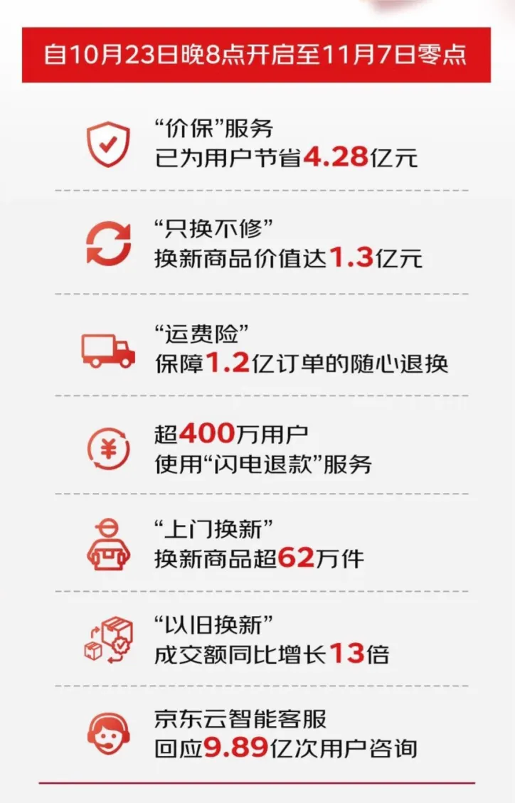 今年2月,京东上线“免费上门退换”服务,凡是带有“免费上门退换”标签的商品,不管大小、轻重和数量,通通免费上门退换。大件退换,也有运费险保障,京东在原来800元/次运费的基础上,新增了一年两次上门取件、每次最高5000元的保障额度。这相当于每年最高可增加10000元退换货运费,不称心,随便退。早在2014年,京东就推出了”退换不退货“服务,只不过之前这项服务只针对自营商品,而现在,第三方商家也将执行这个新标准。商品买贵了,以前只能自认没踩对点,或是想退个差价要和客服Battle,要等财务打款,而京东2008年就上线的“一键价保”服务,申请后差价立刻到账,甚至有的商品,买贵还能赔双倍差价。此外,京东的售后服务也没得说,无论是商品瑕疵,还是不想要了,只要在有效期限内,都可以申请退货,享受”闪电退款“秒到账。还有一些自营的家电大件,买的时候没问题,用着用着出故障了,京东还有“365天只换不修”服务,工作人员上门处理,全程不用多花一分钱、多费一分口舌。