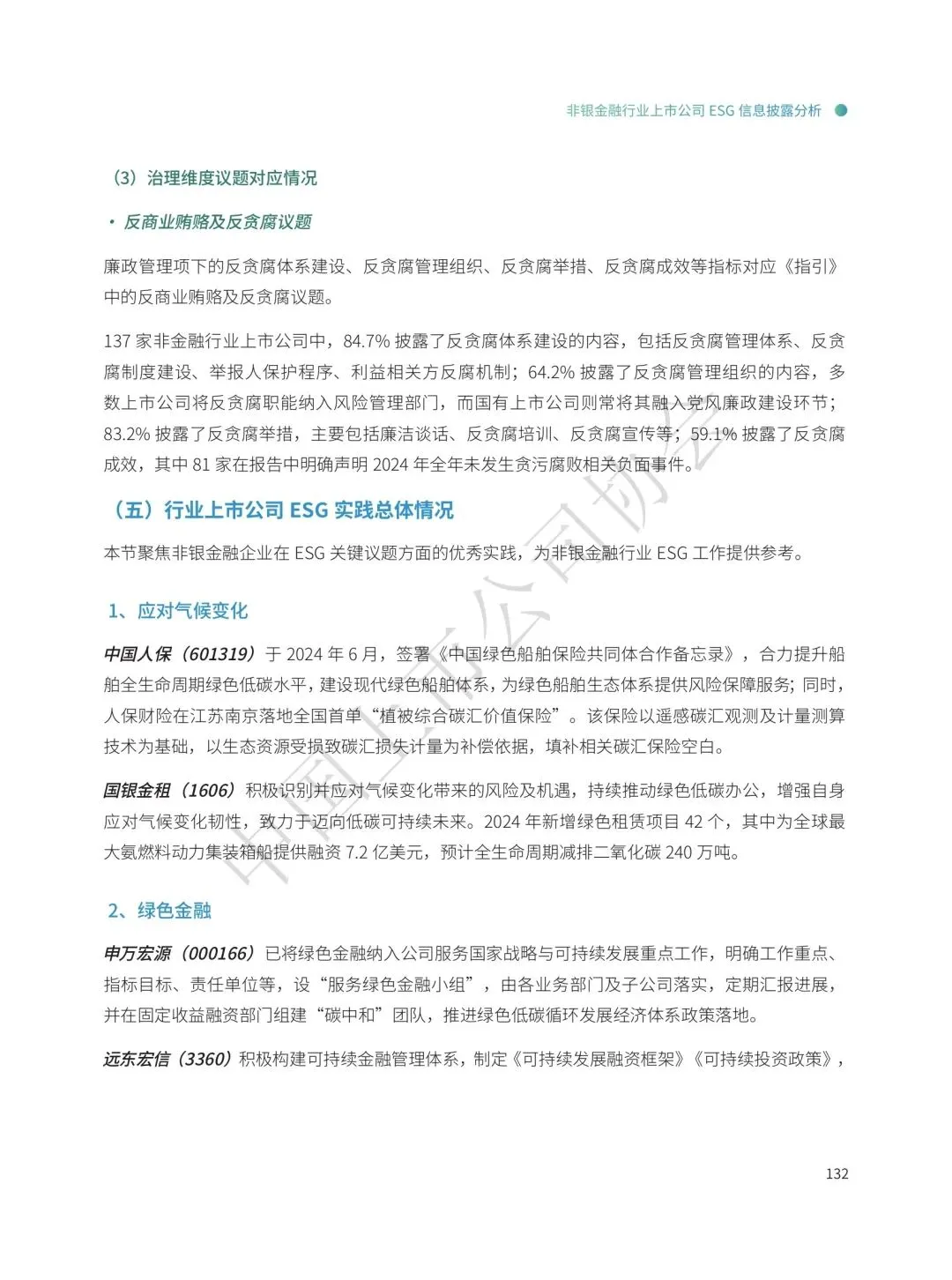 非银金融行业披露率92.7%,保险子行业披露率100%,积极拓展绿色金融产品与服务。