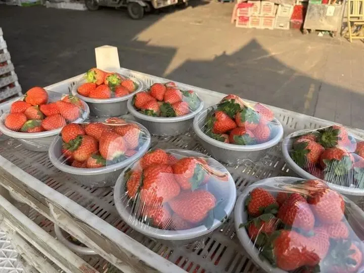 价格的松动,源头在批发市场。天还没亮透,批发市场已是车流不息。成筐的草莓从货车上卸下,工人们手脚麻利地分拣、装箱。本地甜宝是绝对的主力,以极具竞争力的批发价,流向城市各个角落。