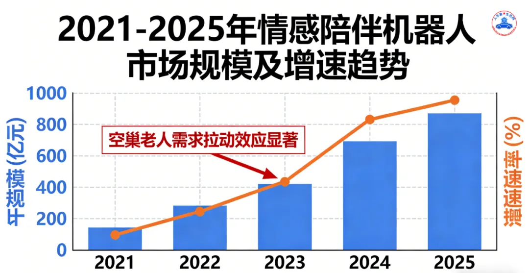 在人口老龄化进程加速与家庭结构小型化的双重背景下,空巢老人的养老服务需求持续升级,情感陪伴与健康监护成为核心痛点。陪伴型机器人凭借AI情感交互、多场景适配等核心优势,逐步突破技术与成本瓶颈,成为解决空巢老人养老困境的新路径。本报告结合2025年最新行业数据,从现状解析与未来走势两大维度,剖析陪伴型机器人在空巢老人场景的应用态势及发展潜力。