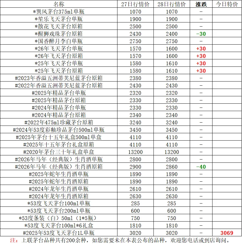 上联茅台酒价格行情发布1月28日