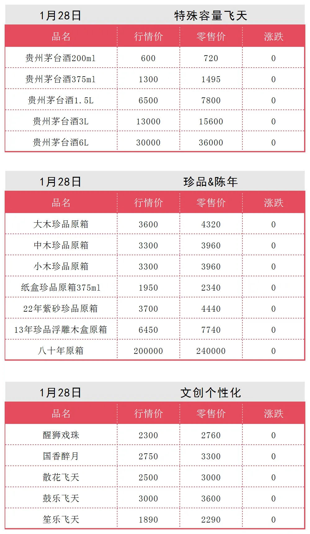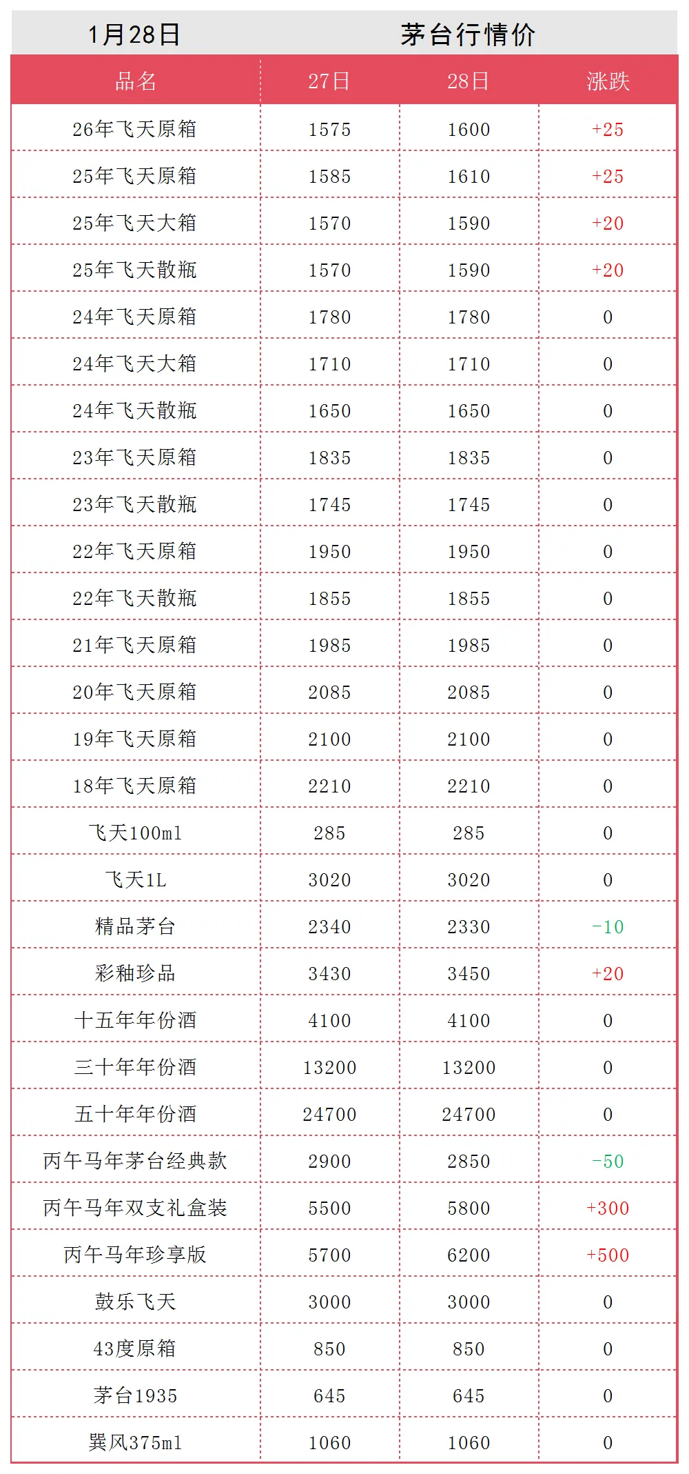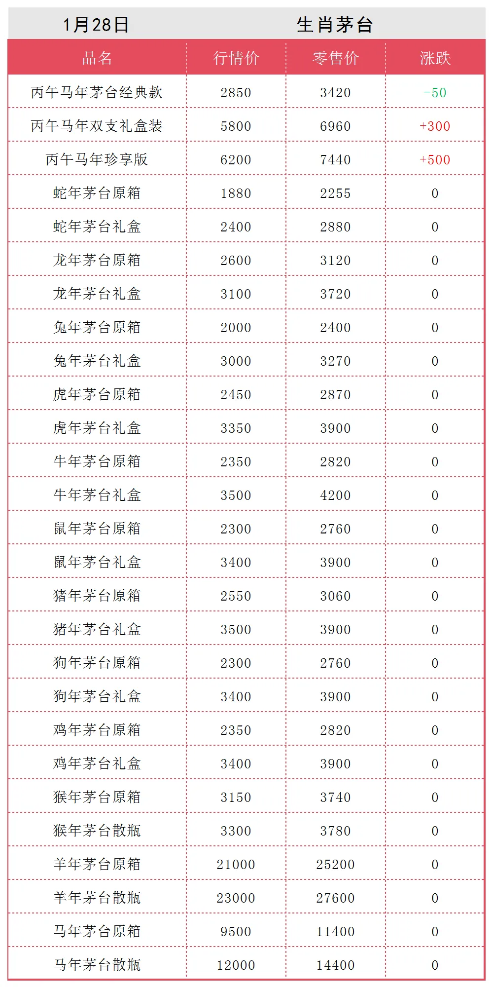 1月28日茅台行情价(参考),价格平稳.........