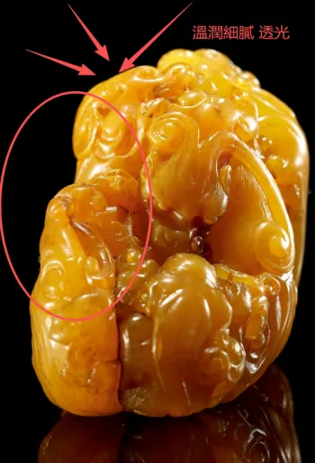 田黃是石中之王,自問世以來一直受到達官貴人、富商巨賈的追捧,而“黃金易得,田黃難求”,“一兩田黃三兩金”等民間說法也使田黃的尊貴地位得到凸顯,甚至讓田黃蒙上了一層神秘色彩。 如今優質田黃早已以克論價,而一些料好、雕工出色的名家名作更是可遇而不可求了。有相關史料記載,現時市面上可見的狹義偏黃,也就是真正的高、精、極品田黃石,數量只有不到1%。 收藏市場上已經很難再看到它的身影,只有參加一些大型拍賣會,才可能一睹其尊榮。 只要是玩家,都希望能一睹它的芳容,那也算是一件幸事,而有實力的玩家,希望能擁有一件藏品而不遺餘力,夢寐以求。本人自身對收藏的喜愛,也是收藏界資深的投資人。曾與業界多位教授實踐探討過關於田黃鑒定中的問題,下麵分享幾點自身常用的一些鑒定技巧。