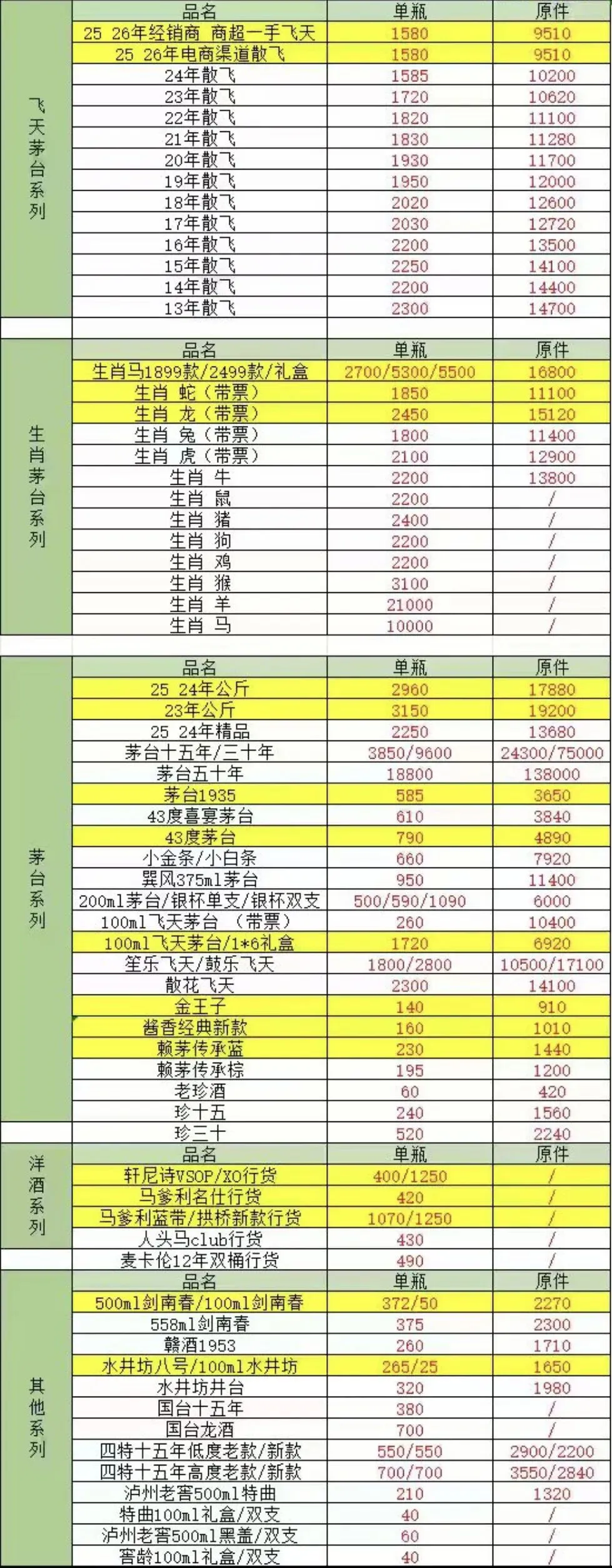 由于白酒飞天茅台价格存在实时变化、地区差异等原因,报价仅供参考。