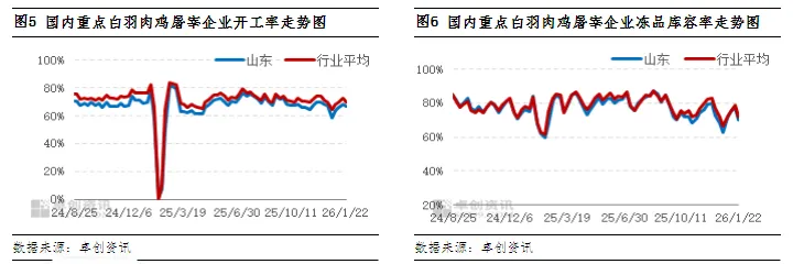 国内白羽肉鸡规模屠宰企业冻品库存、开工率统计及分析(20260116-0122)