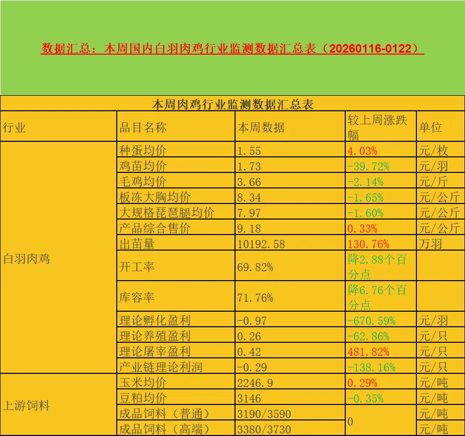 数据汇总:国内大肉食鸡苗孵化场出苗量统计(20260116-0122)
