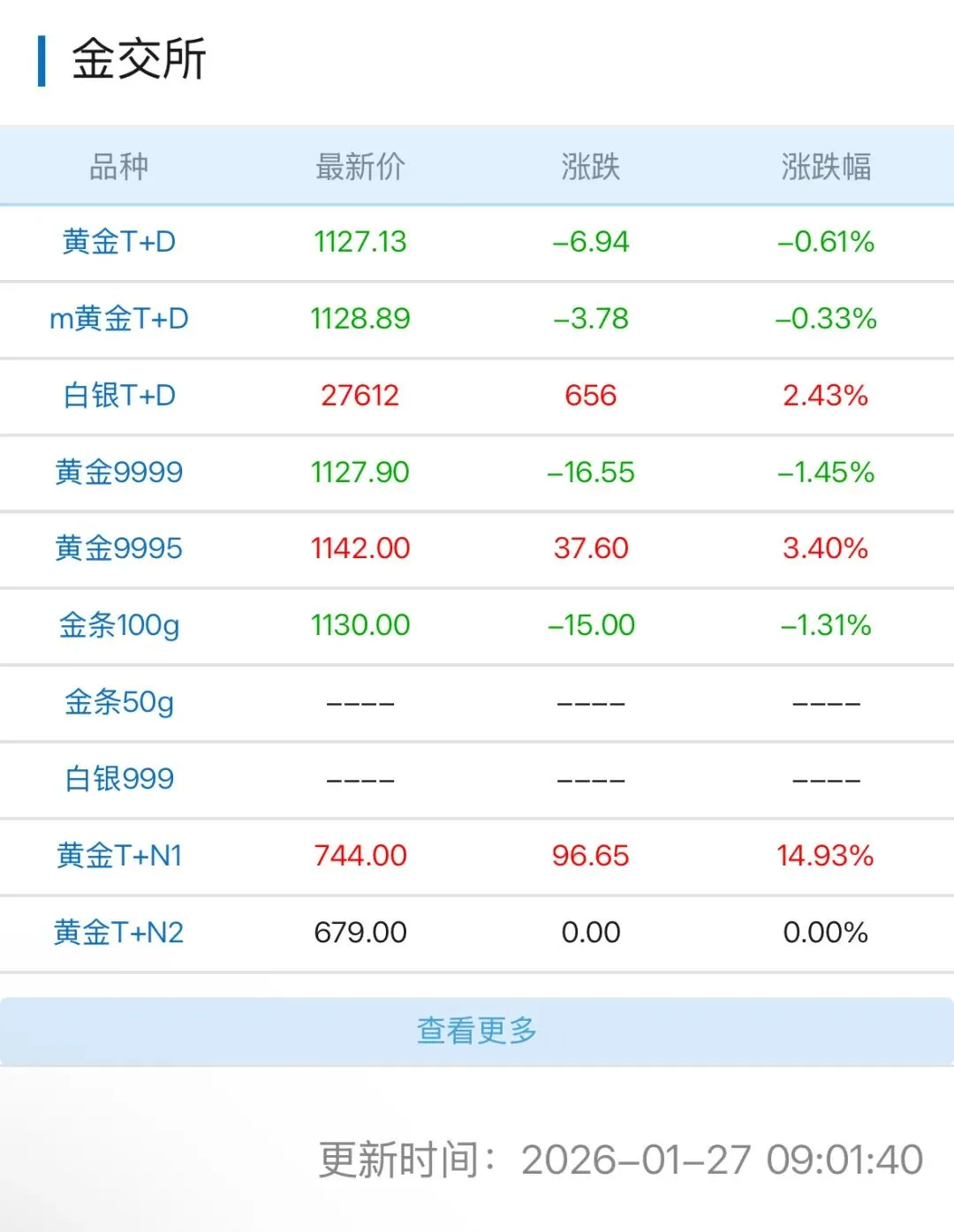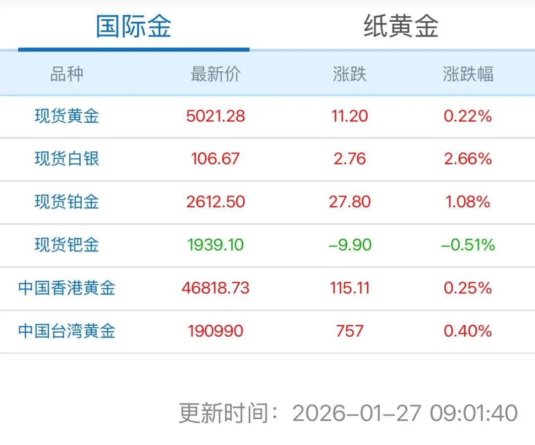 今日金价行情,今日金价查询表( 2026年01月28日)