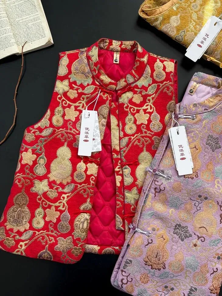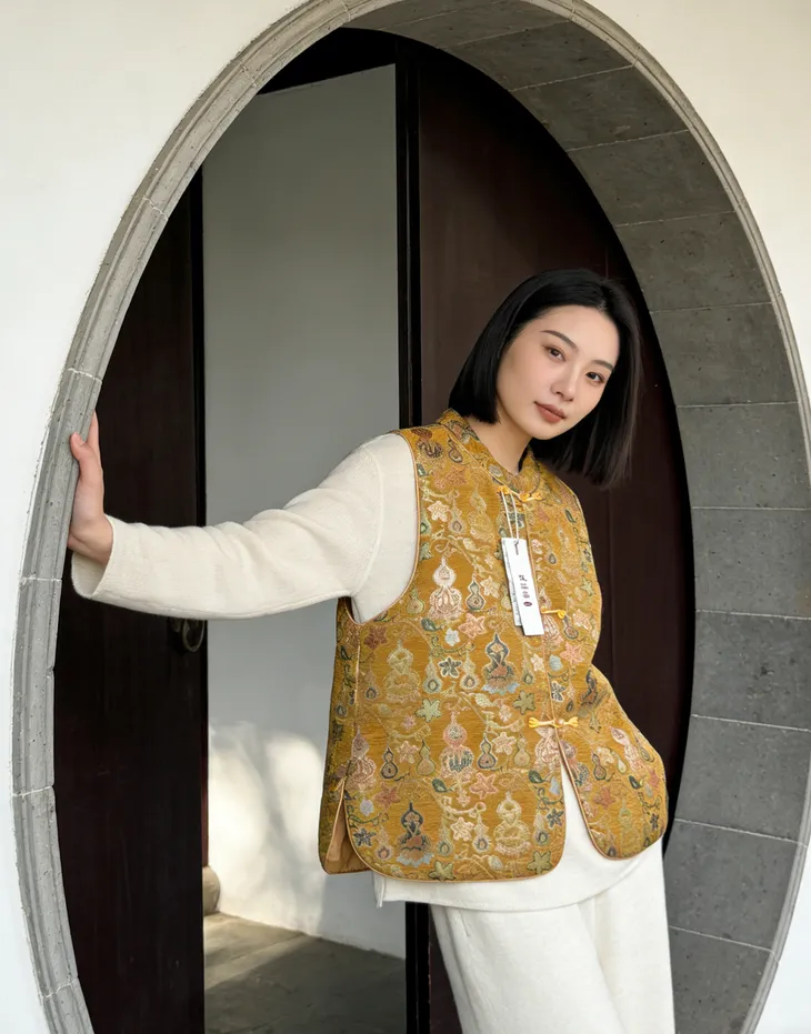 就是这件早已火出圈的——新中式夹棉马甲,高级感十足的吉祥花纹,让人一眼沦陷的东方高级感。