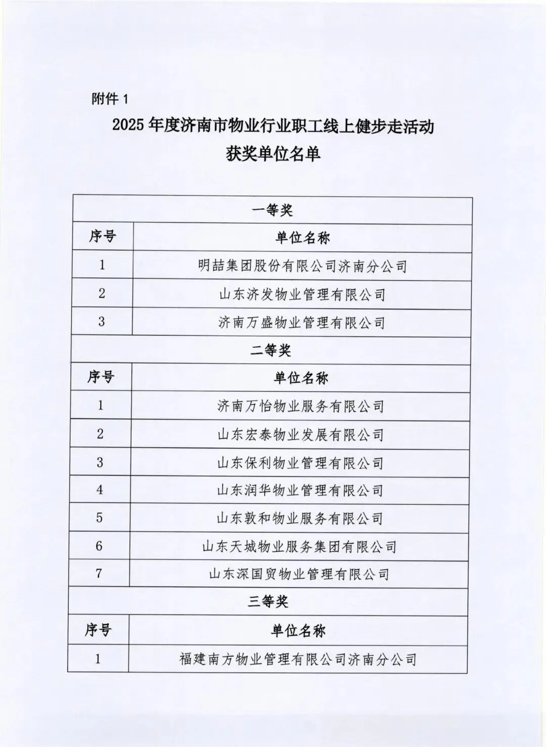 >关于表扬2025年度济南市物业行业职工线上健步走活动获奖单位及个人的通报