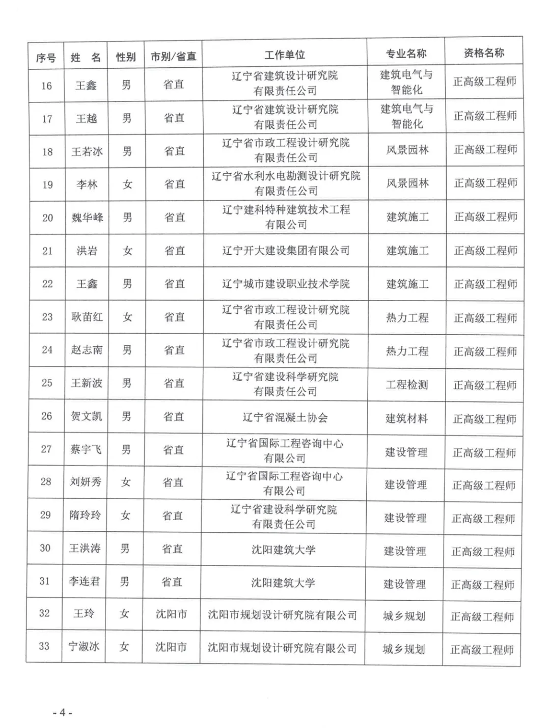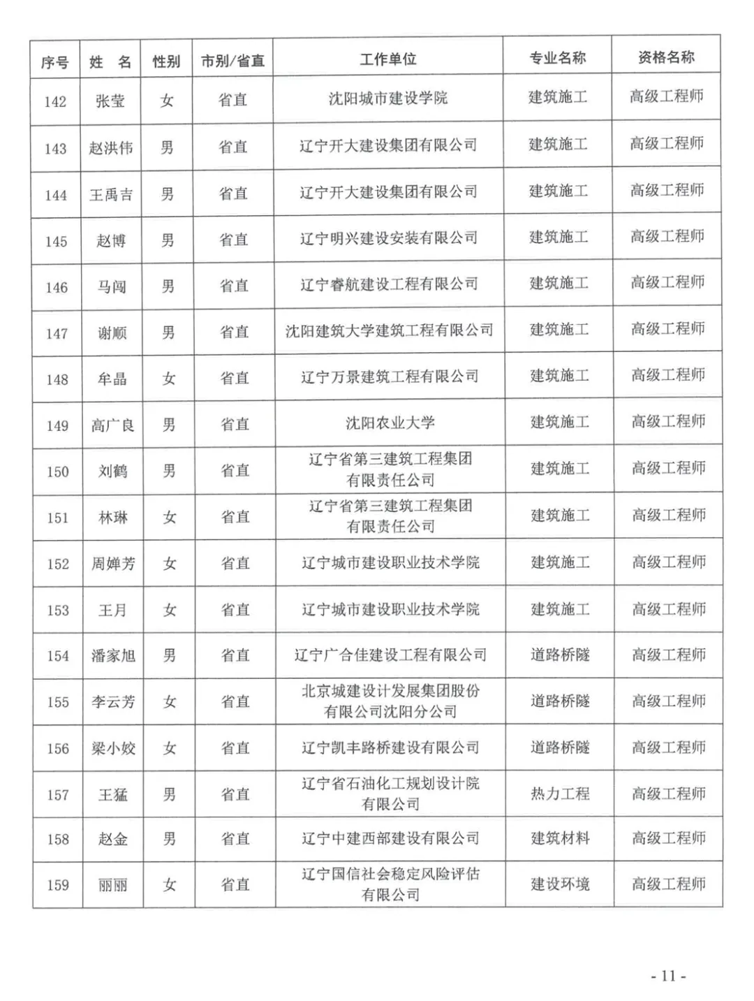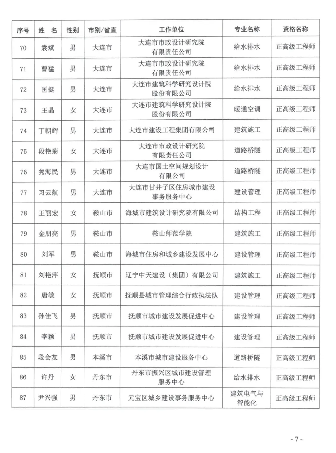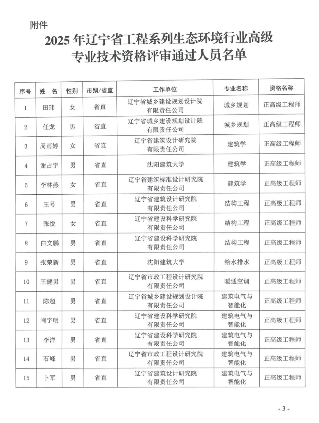 关于公布2025年辽宁省工程系列建设行业高级专业技术资格评审通过人员名单的通知