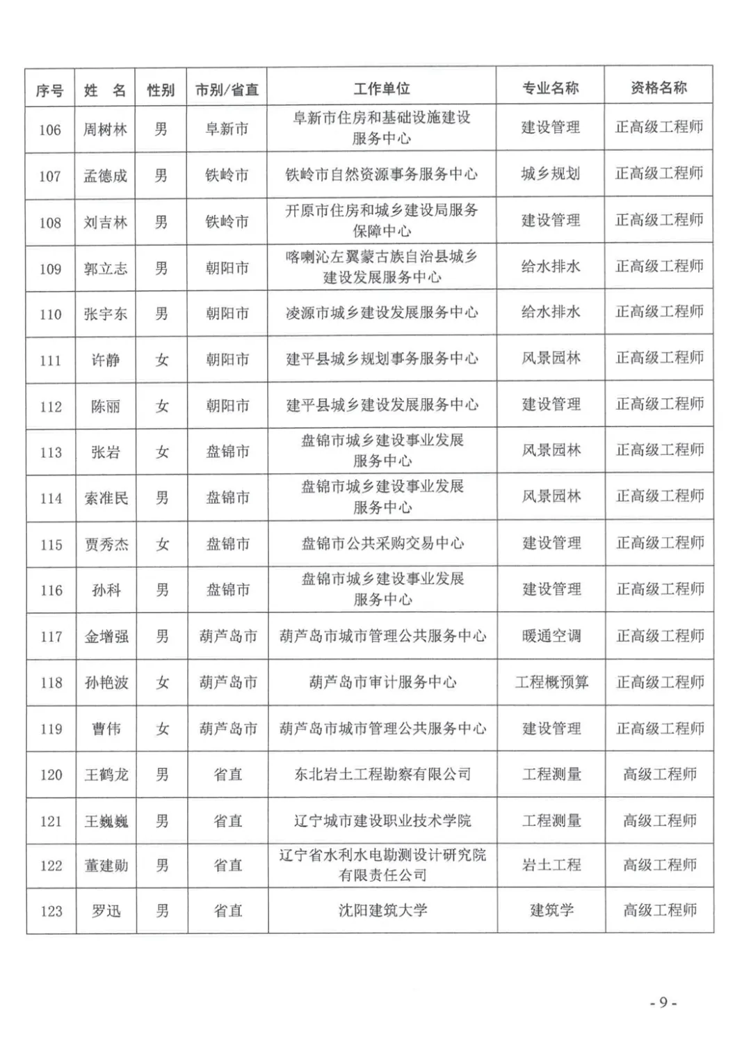 >关于公布2025年辽宁省工程系列建设行业高级专业技术资格评审通过人员名单的通知