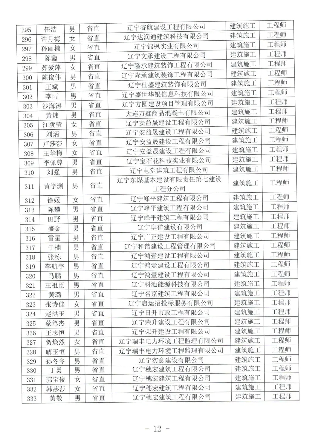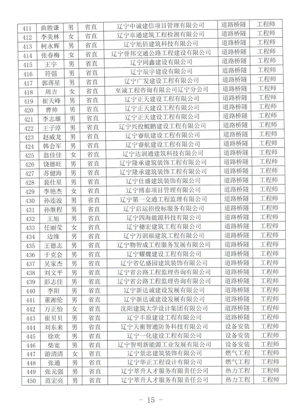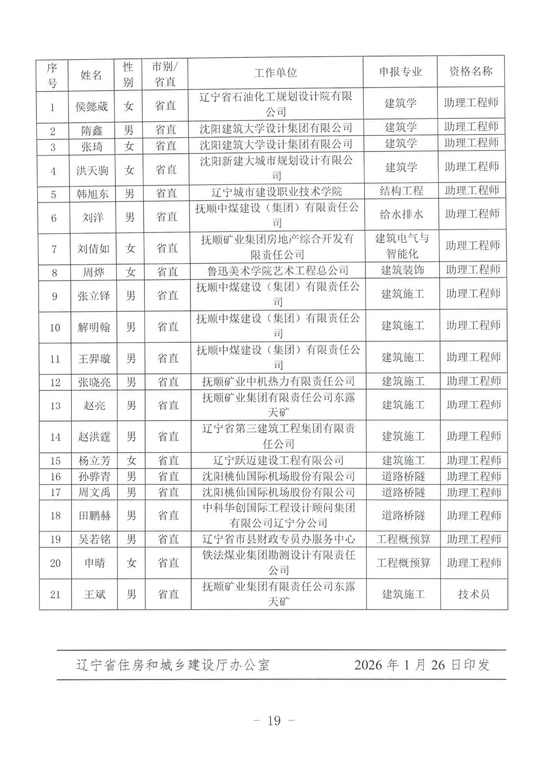 关于公布2025年辽宁省工程系列建设行业中级及以下专业技术资格评审通过人员名单的通知