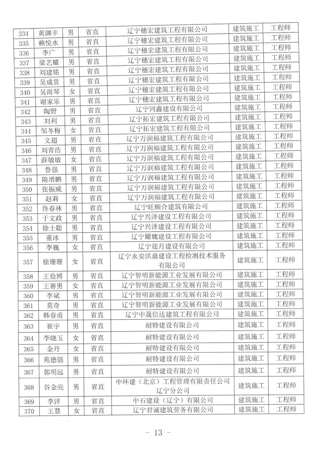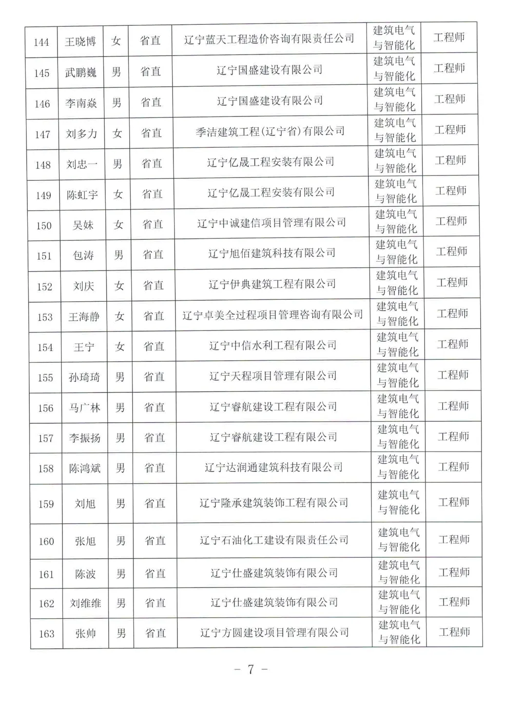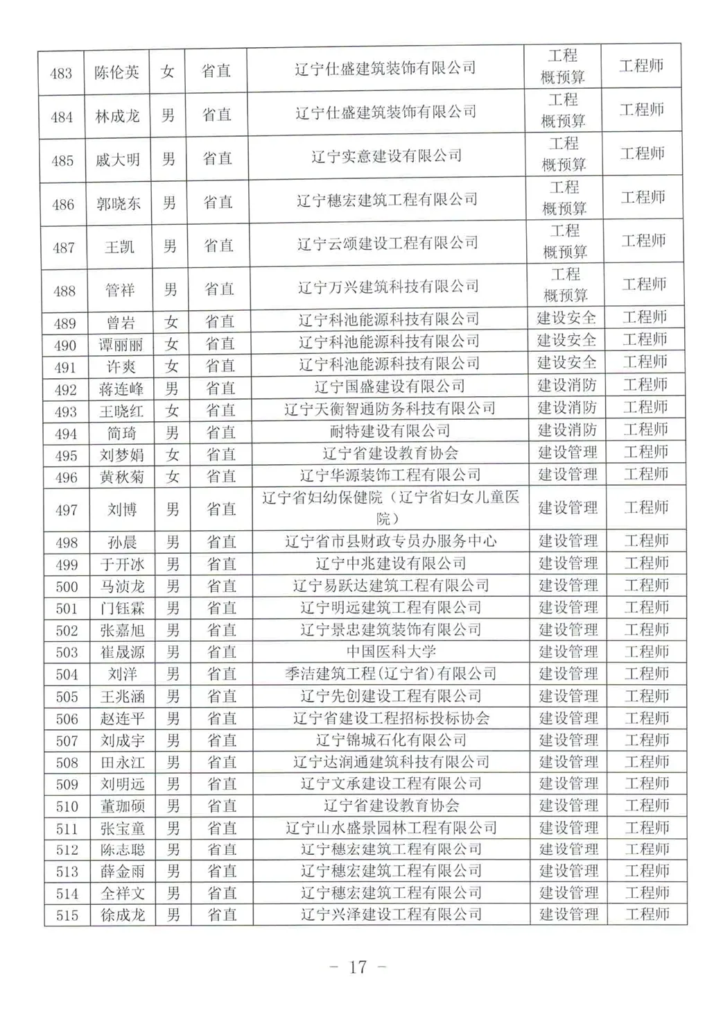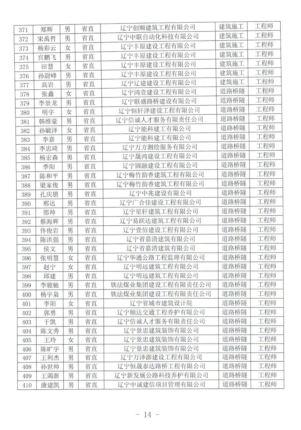 关于公布2025年辽宁省工程系列建设行业中级及以下专业技术资格评审通过人员名单的通知