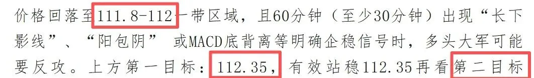 技术指标关注112.3,站稳则有望上攻112.52-112.63。跌破反抽失败可能再次回测下方支撑112-111.8支撑区。一旦跌破111.8,确认本轮反弹结束开启新一波下跌。