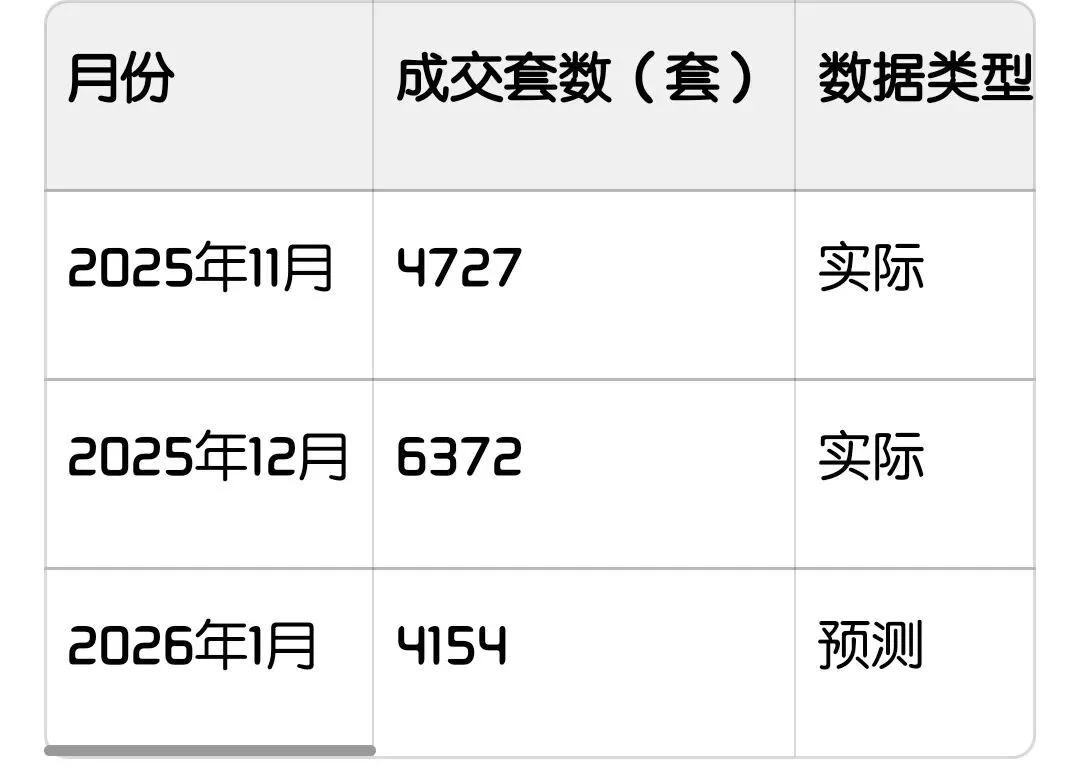 12月对比11月是有明显的涨幅,但1月头四周的成交开始回落,预测整个月会跟11月持平,对比12月明显回落