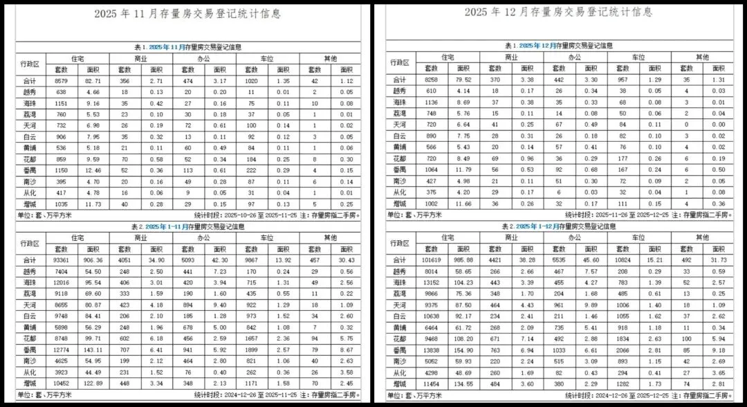 这是25年11月,12月,今月的二手房成交数据