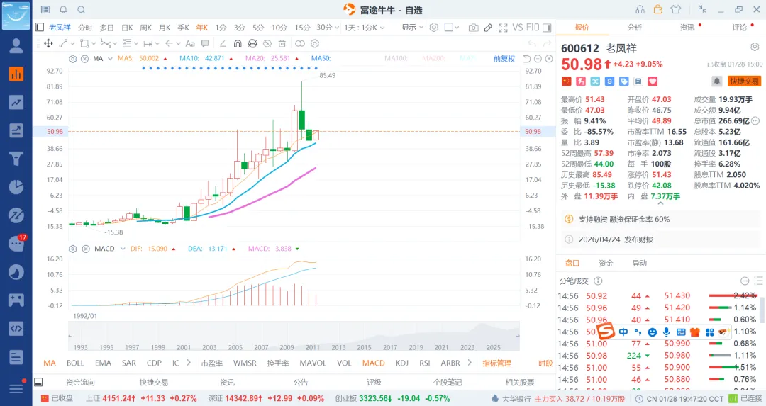 26-1-28 长线价投之老凤祥走跌继续加多