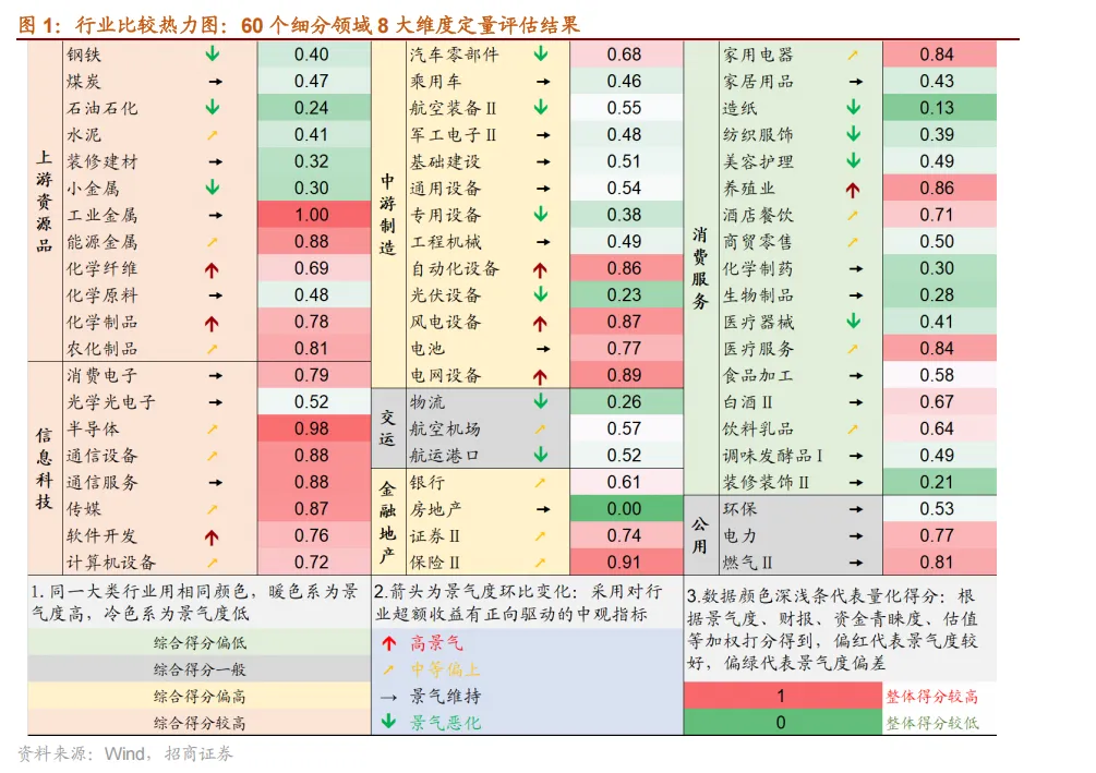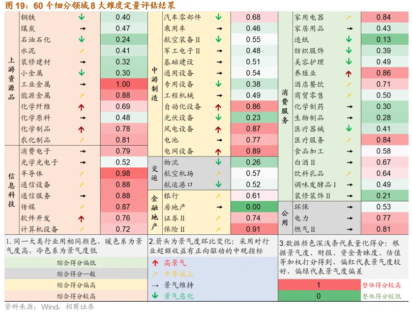 ⚑ 【中观景气】上游资源品:地缘政治风险推升原油和贵金属价格,关注价格强势的有色和供给持续出清的部分化工品等。中游制造:延续结构性分化,关注业绩有望回暖的电力设备、军工、工程机械、自动化设备等。消费/医药:需求放缓,关注政策支持和需求季节性复苏的社会服务以及医疗器械等。金融地产:地产政策释放积极信号,居民存款持续向非银搬家,建议关注业绩延续较高增长的非银。信息科技:存储器供不应求,光模块量价共振,重点聚焦半导体、通信设备、游戏等业绩有望改善的细分领域。