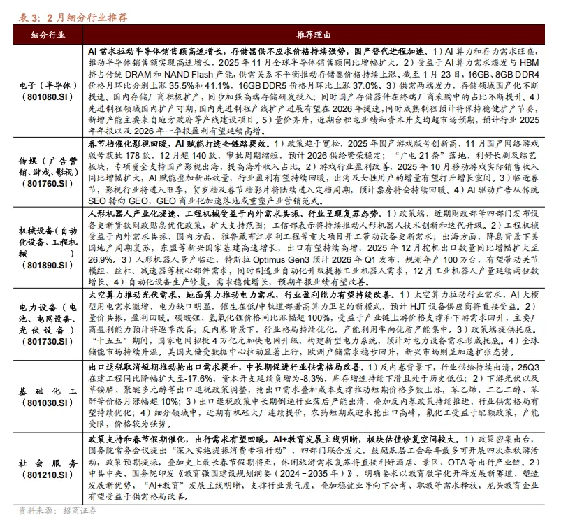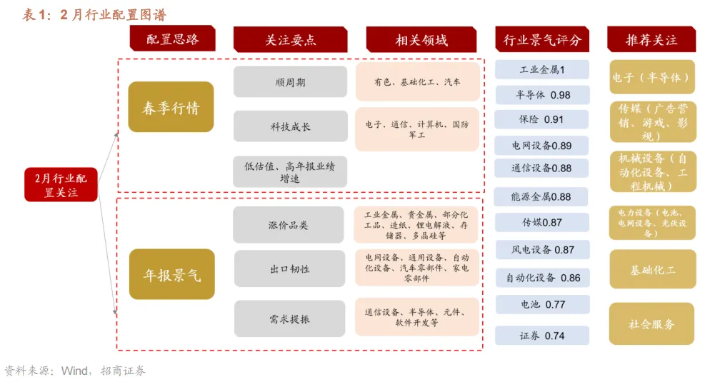 ⚑ 展望2026年2月,行业配置重点关注景气修复的线索和春季行情的演绎: