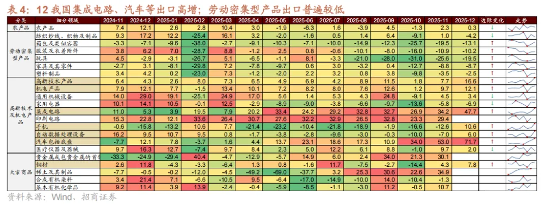 2025年出口整体同比增速5.5%,相比2024年的5.8%增幅略有收窄,但仍有韧性。12月出口同比增幅扩大至6.6%,进口同比增幅扩大至5.7%。