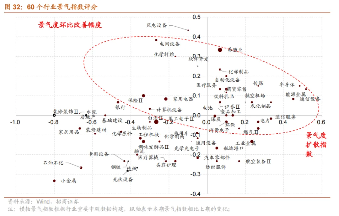 行业方面,目前业绩向好率较高的行业主要有资源品中有色金属、基础化工;制造领域汽车、机械设备、电力设备;科技成长领域通信、电子,以及非银等行业。