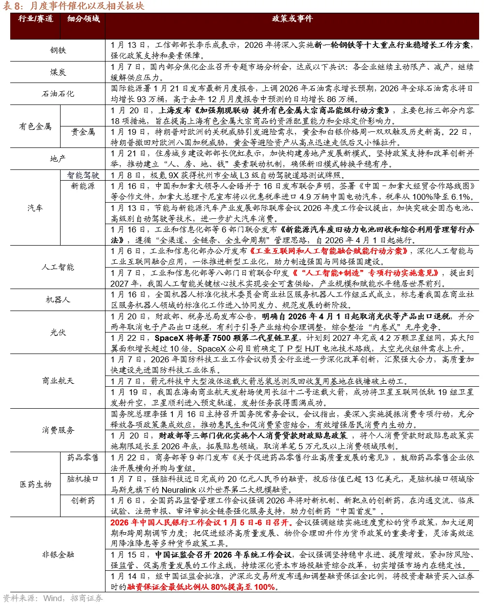 1月中游制造板块内部延续结构性分化,景气改善与需求确定性主要集中在新能源产业链、航空/航天装备、机器人等中高端制造和工程机械。整体来看,制造业仍处于弱复苏阶段,传统制造领域需求偏弱,新能源、科技创新与战略性新兴产业受益于政策和需求双轮驱动,延续较高景气。