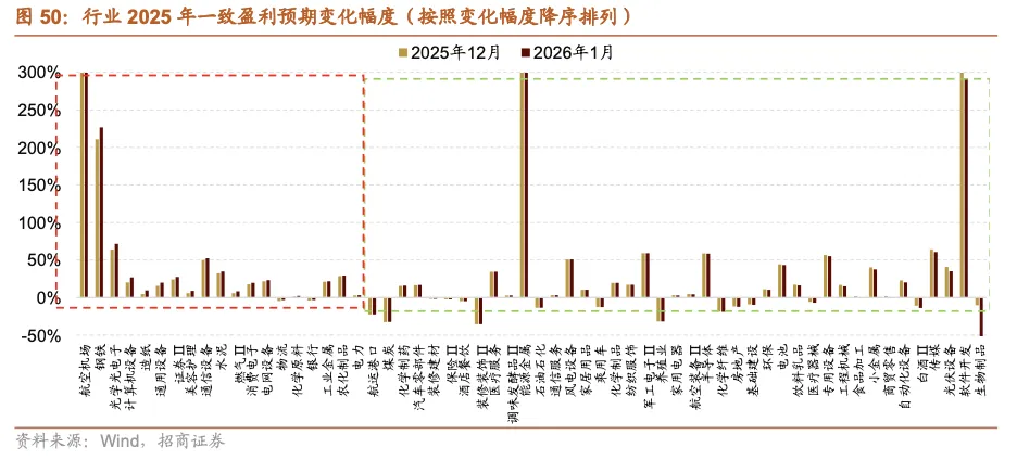 随着年报业绩预告披露的临近,部分行业一致盈利预期有所下调,生物制品、软件开发、光伏设备、传媒、白酒、自动化设备等下调幅度较大。