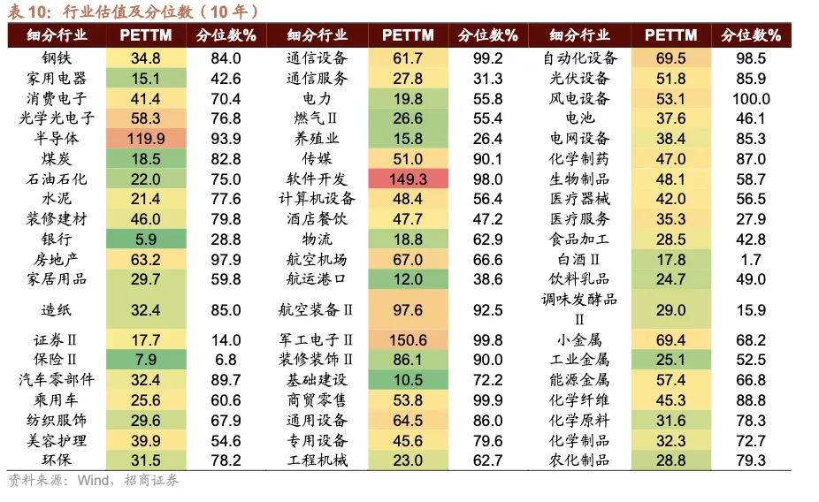 ⚑ 【估值水平】过去一个月估值分位数提升幅度较大的行业集中在半导体、汽车零部件、传媒、自动化设备等。