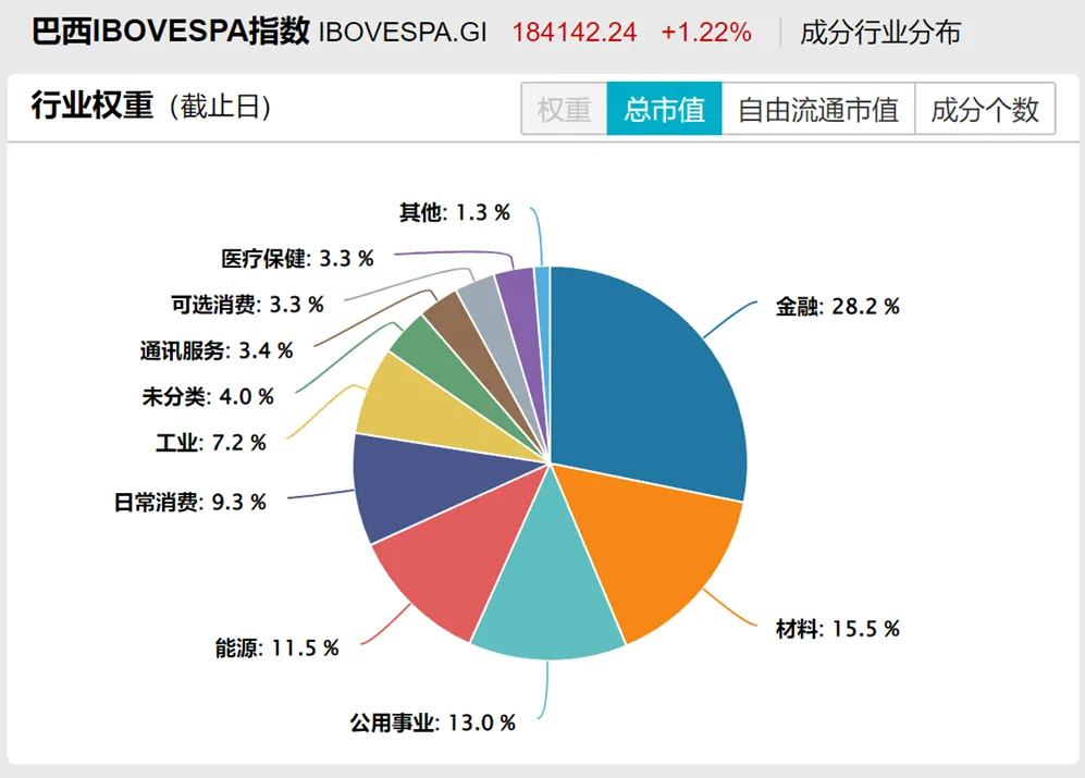 1.资源+金融双核心:淡水河谷(11.06%)+巴西石油(10.20%,PETR4+PETR3)+三大银行(15.41%,ITUB4+BBDC4+ITSA4)合计权重超36%,决定指数基本走势。