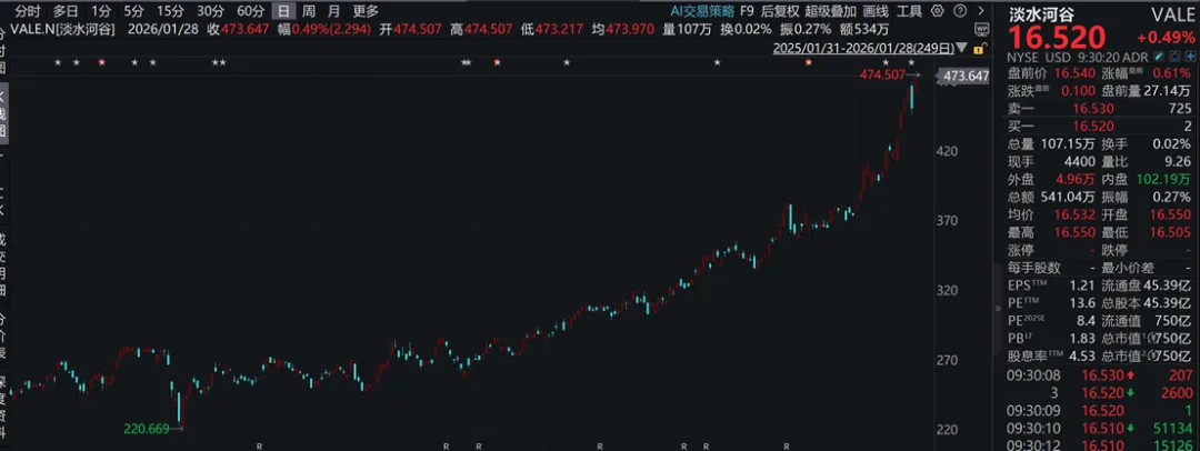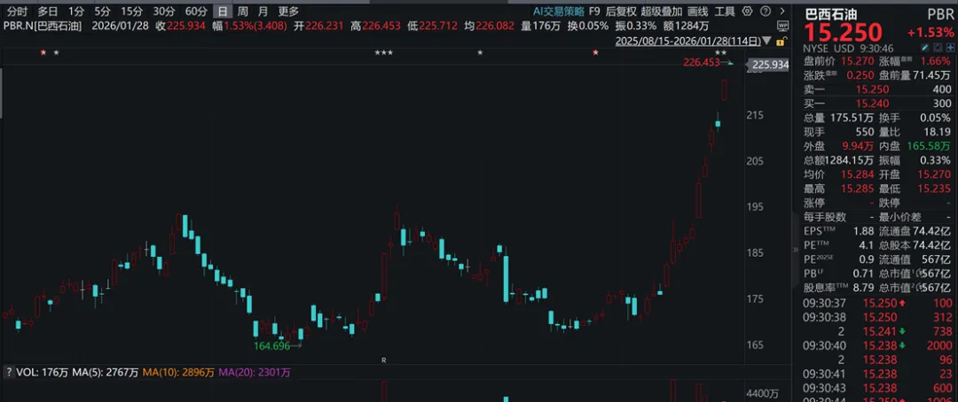 主要重仓股近期走势,铁矿石、原油价格上涨,直接利好淡水河谷、巴西石油等权重股:
